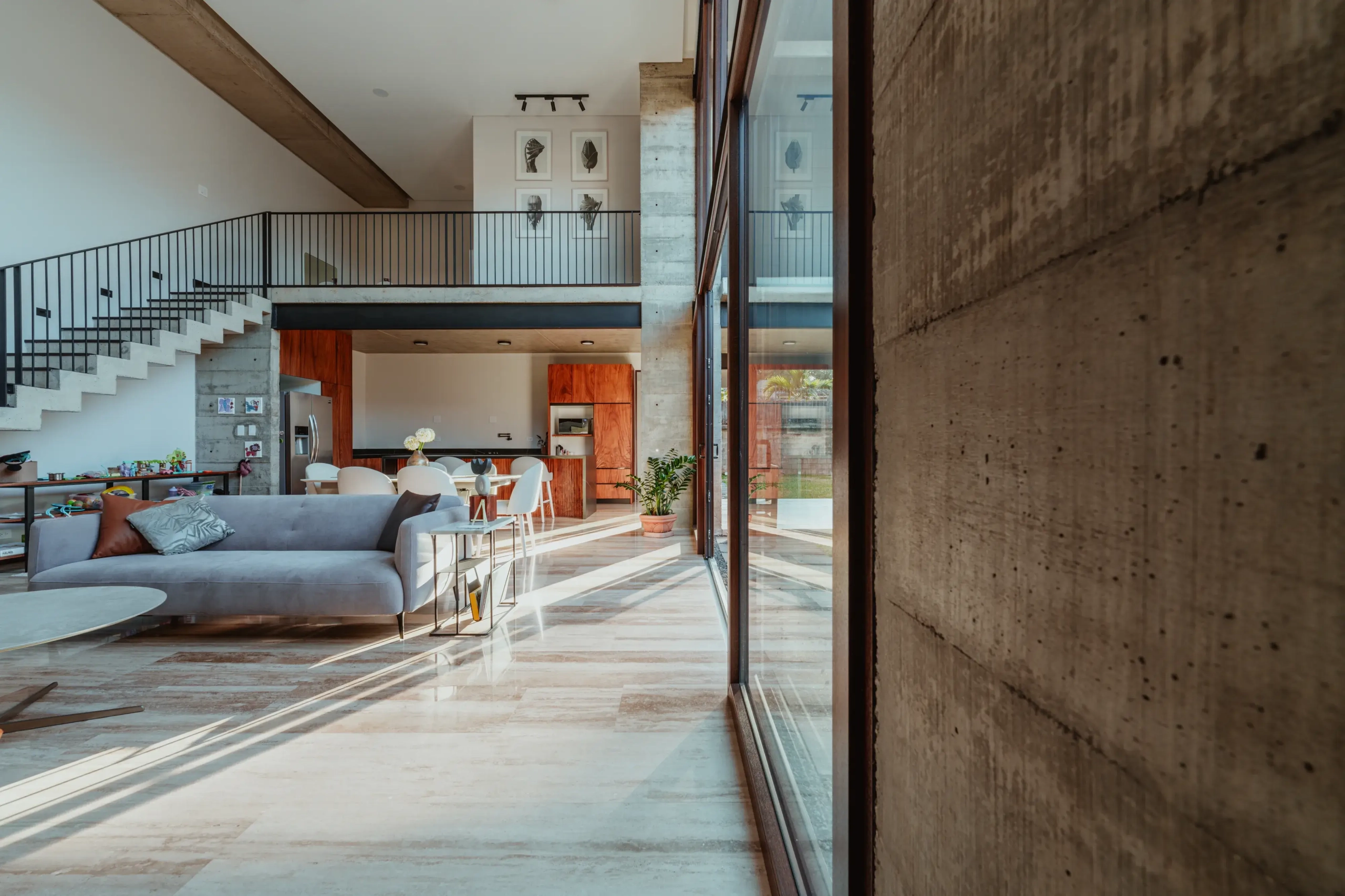 Architectural Grandeur: The social areas boast double-height ceilings and an integrated open-concept layout that seamlessly connects the living and dining rooms.